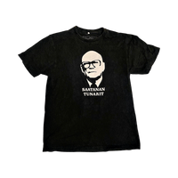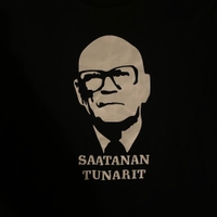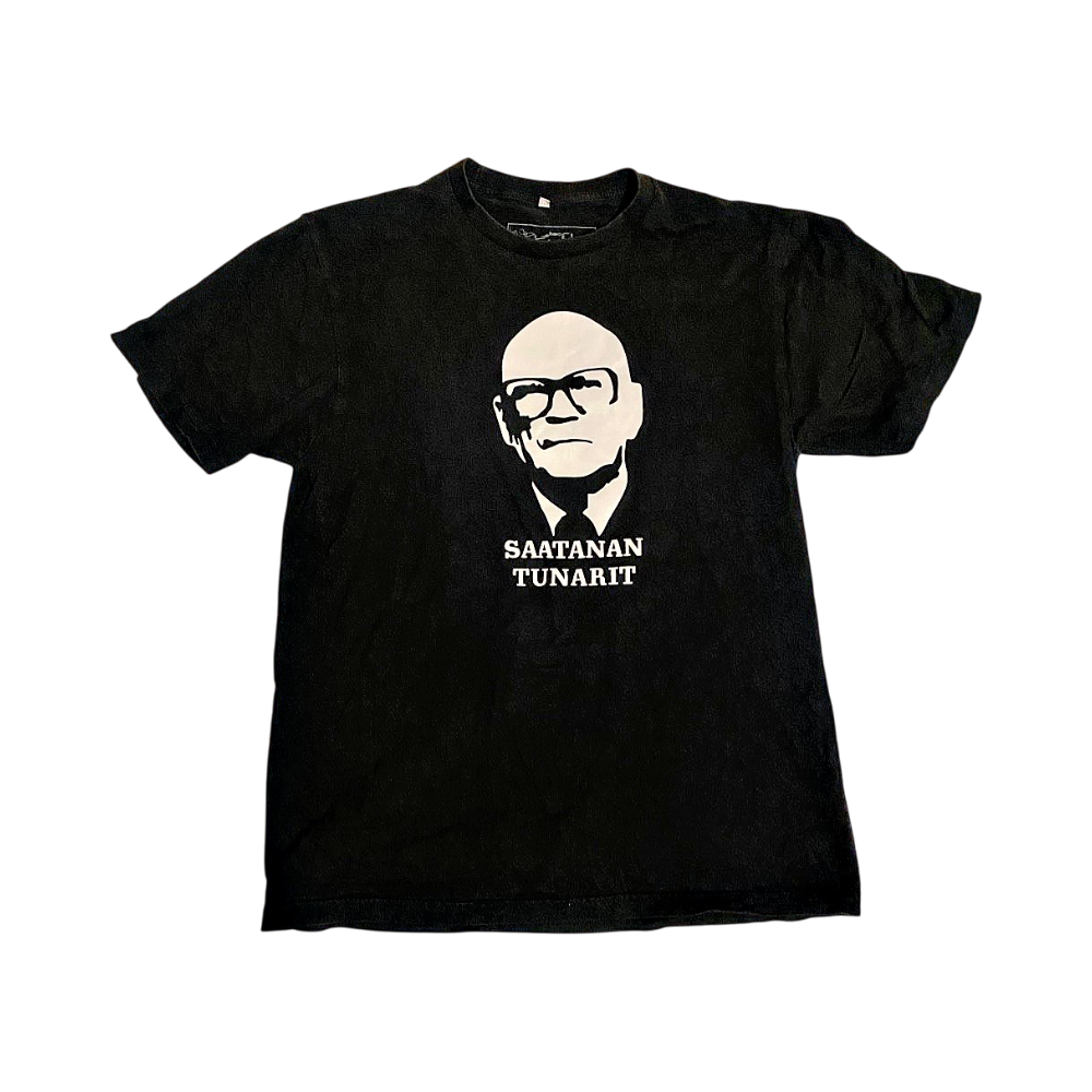 Käytetty musta t-paita, jossa Kekkonen-painatus edessä. Kokolapussa lukee L, mutta menee hyvin myös S-M. Todella hyvässä kunnossa. #saatanantunarit #ukk