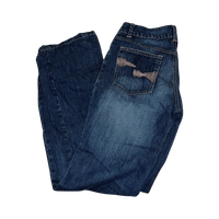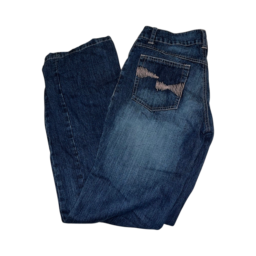 Tummansiniset naisten matalavyötäröiset farkut, todella vähän käytetyt, takana ihanat yksityiskohdat!