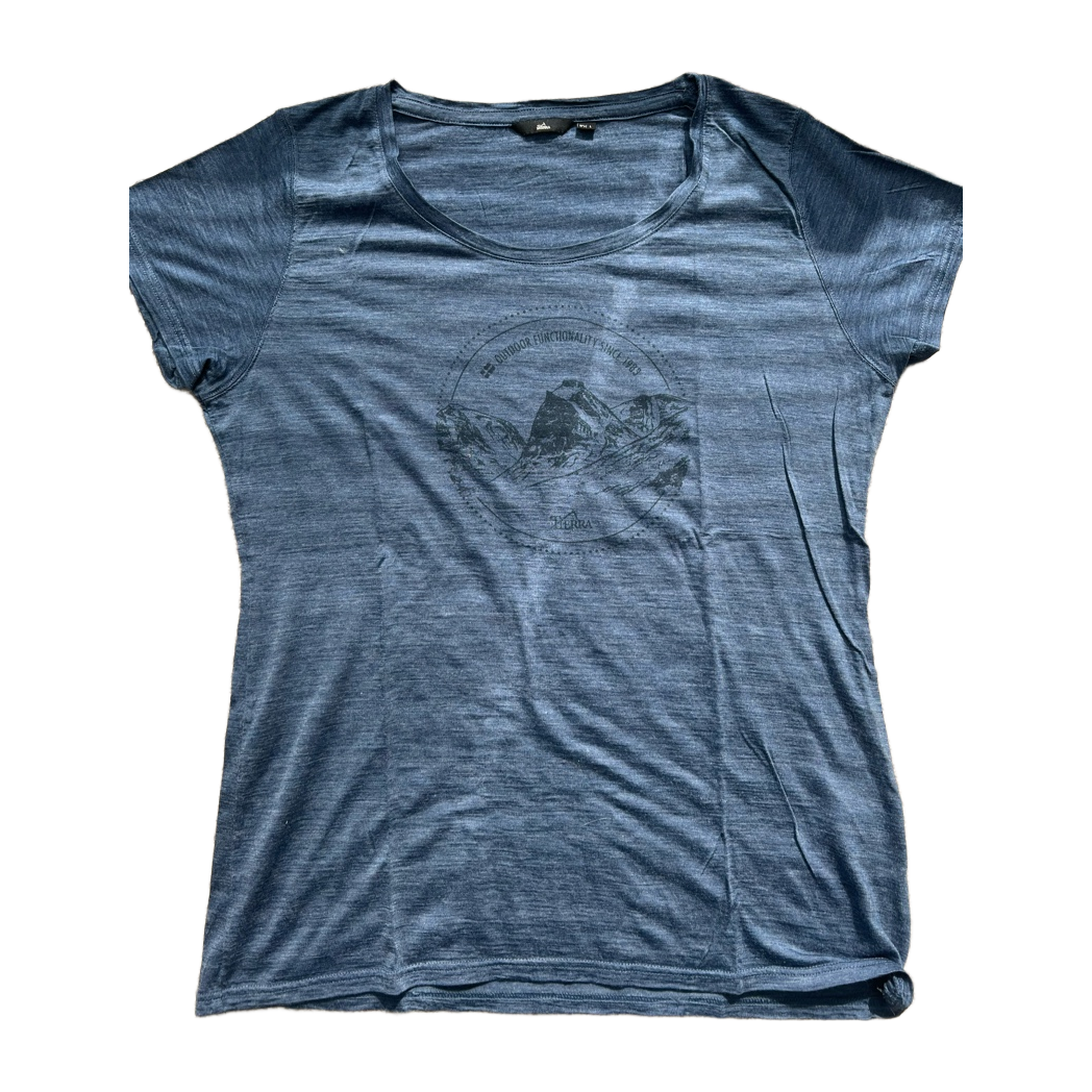 Oikein siistikuntoinen Tierra t-paita, pehmeää villa/lyocell sekoitetta. Koko l, pituus 67cm ja kai kai mitta 52cm.