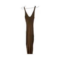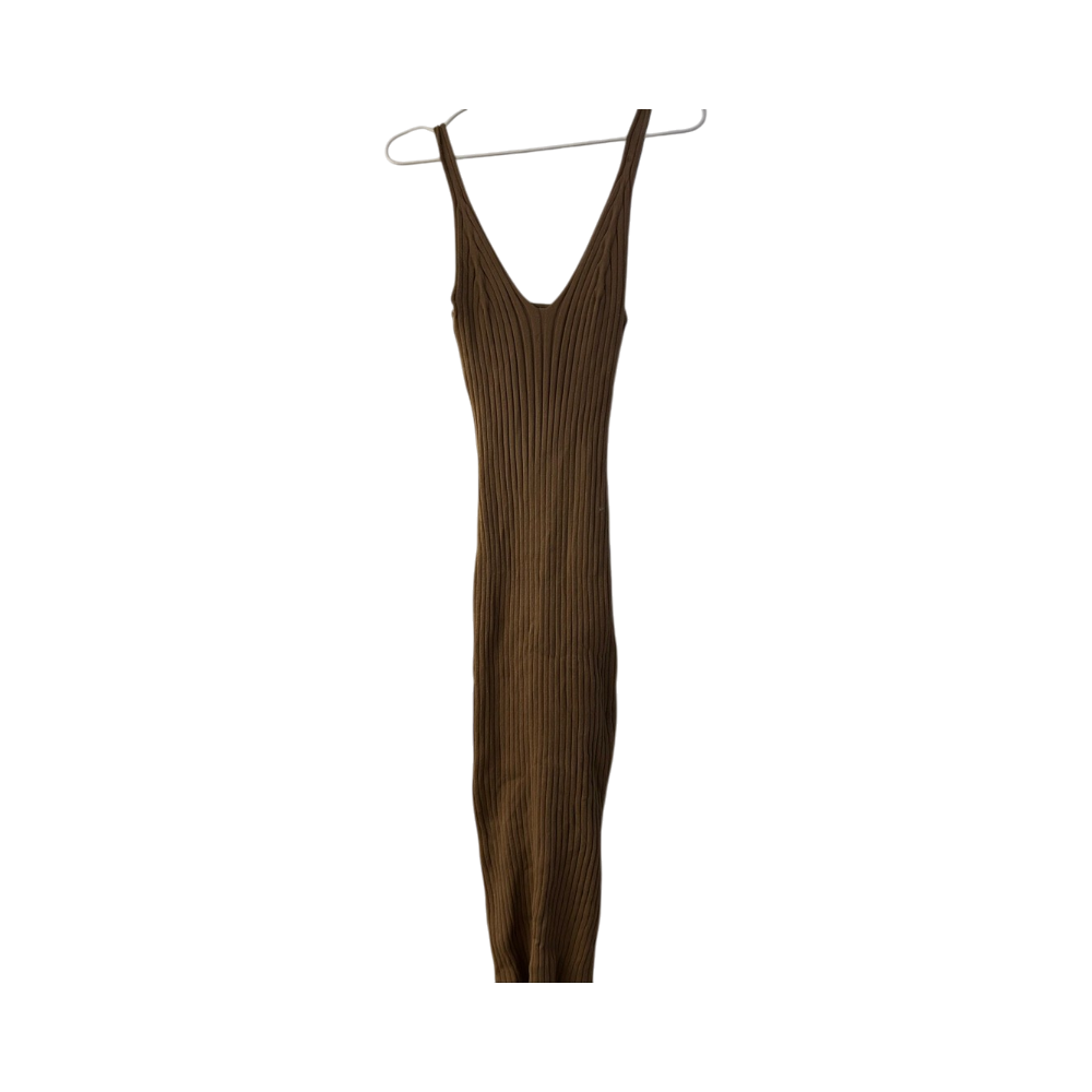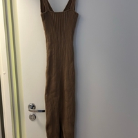 Pitkä ribbineulottu mekko ohuin olkaimin, istuva malli.