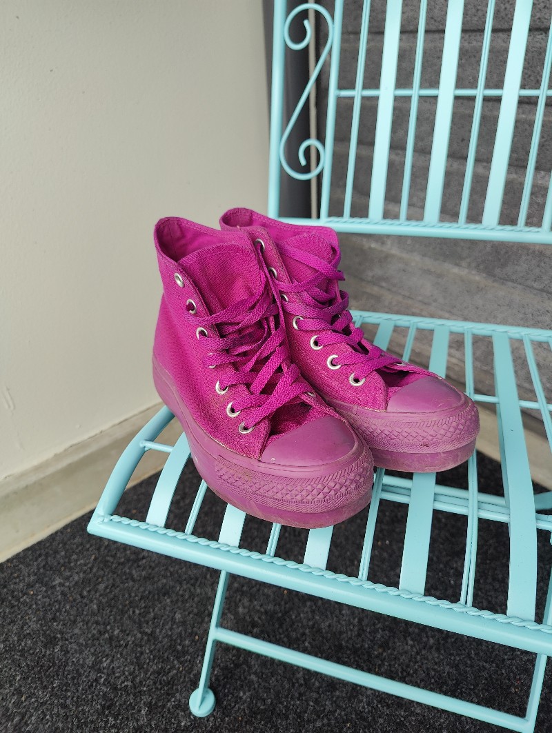 Violetit platform pohjaiset Converset koossa 36. Siistissä kunnossa, mutta sielä täälä pieniä käytön jälkiä ja kulumia. Ei enää tule käytettyä itse, siksi myyn. 💜