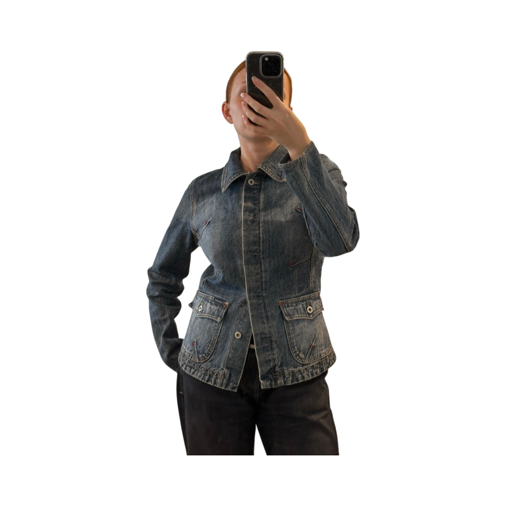 Ihana ja todella hyvässä kunnossa oleva farkkutakki. Istuu ihanasti ja näyttää varsinkin kivalta näin kiinni napitettuna. Istuu kokoa S. Merkki outerlimit.