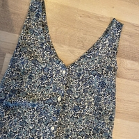 Sininen kukkamekko, koko XS. Olkaimia lyhennetty hieman (näkyy viimeisessä kuvassa) koska ei istunut mielestäni hyvin. Jäänyt itselle pieneksi mutta tosi hyvässä kunnossa!