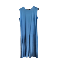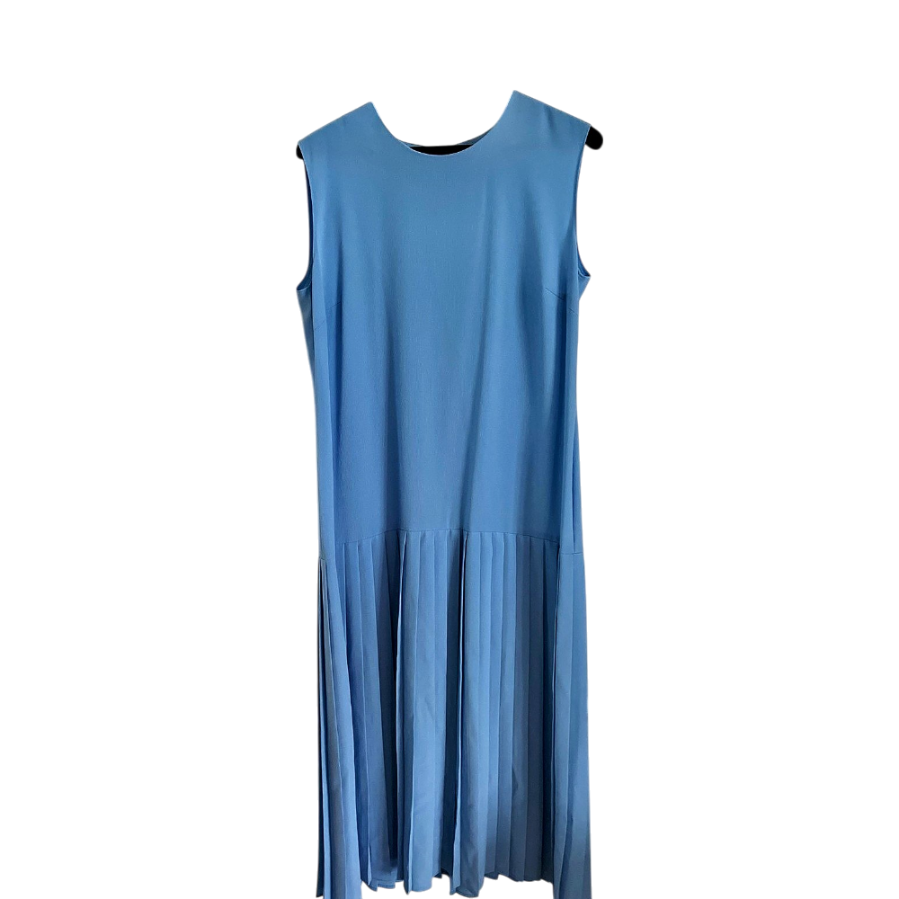 Pidempi hihaton mekko vuorilla, kauniisti pliseerattu helma. Jakku napeilla ja olkatoppauksilla. Kuuluvat yhteen. Koko reilu 36, eli vastaa minusta 38 kokoa.