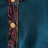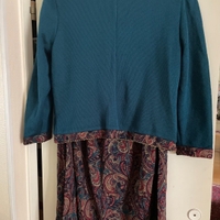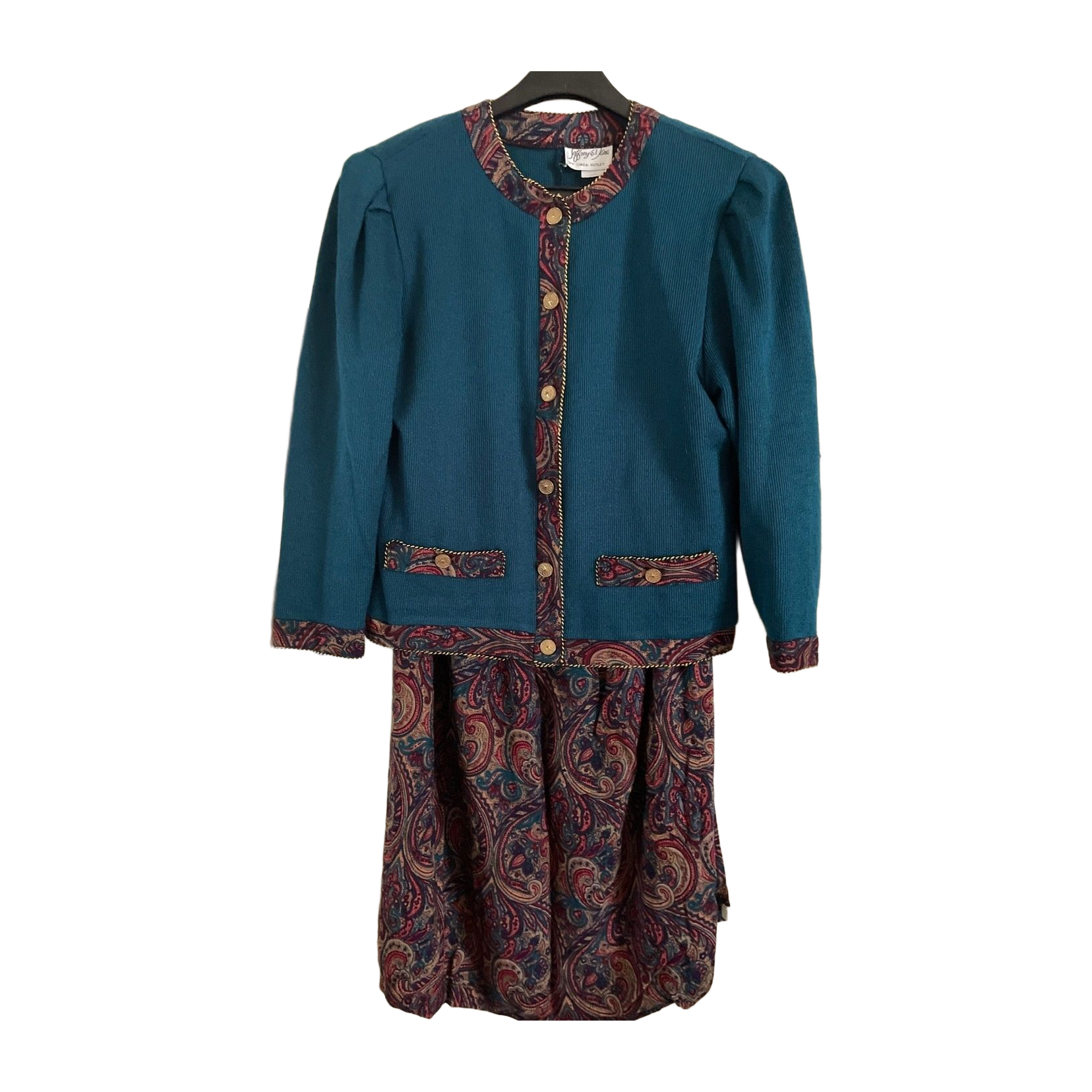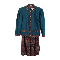 Vintage jakku ja hame, tiukkaa petrolia ja kultaa, hame hyvin muokattavissa.