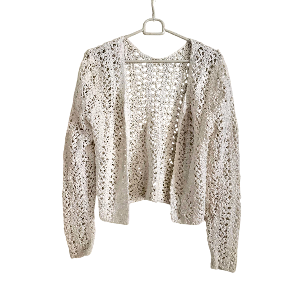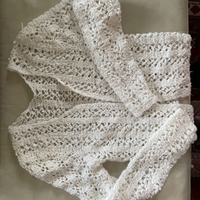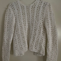 Itse virkattu pikkuinen jakku valkoista ja vähän kimaltelevaa lankaa. Ihana yhdistää ihan mihin vaan.