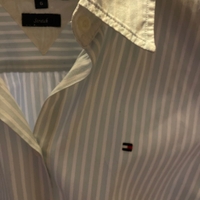 Siisti vaaleansini/valkoraitainen Hilfiger kauluspaita joustavaa materiaalia.