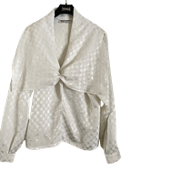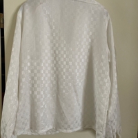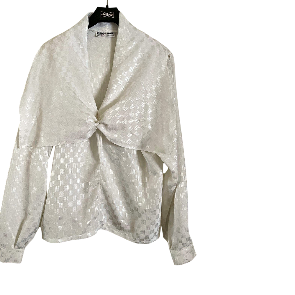 Tosiaan ehta kasarin ”exclusive”, erikoisella kauluksella oleva satiinipaitapusero. Olkatoppaukset.