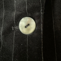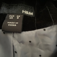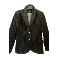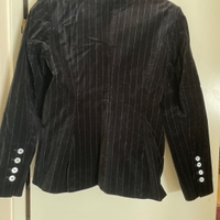 Liituraita samettijakku. Ihan niin 2000-luvun alulta. Ehkä kerran käytetty korkeintaan. Paksu ja hyvä materiaali. Vähän painautunut kaapissa ollut viikattuna.