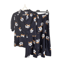 Pikku-tunika lyhyillä hihoilla sekä muotolaskostettu alaspäin levenevä hame.