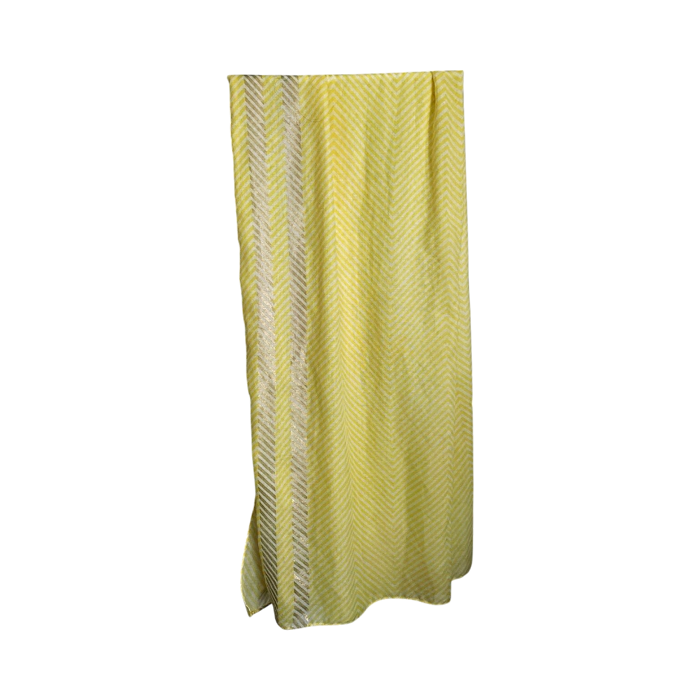 Imarteleva hento keltainen väri, jossa valkoista ja kultaa. Hento ja kevyt materiaali.