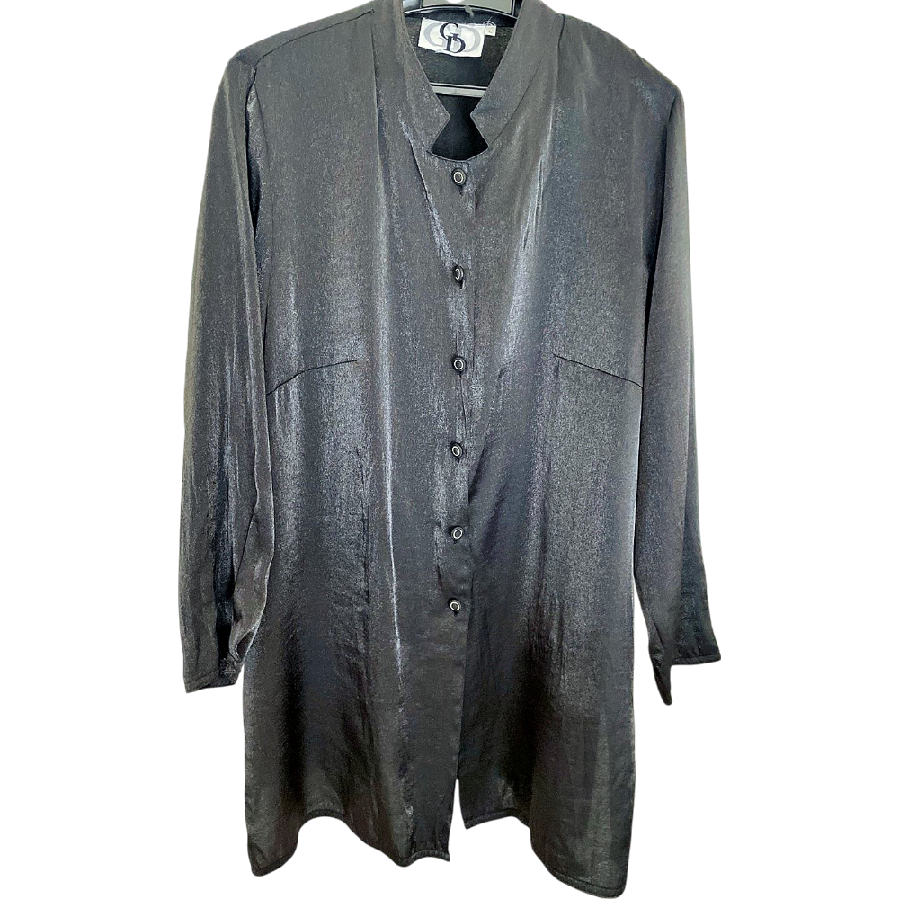 Hieno GD paitajakku mustaa hohtavaa kevyttä satiinia. Reilu L koko, vastaa minusta enemmän XL kokoa. Kai-kai 61 cm.