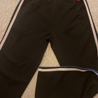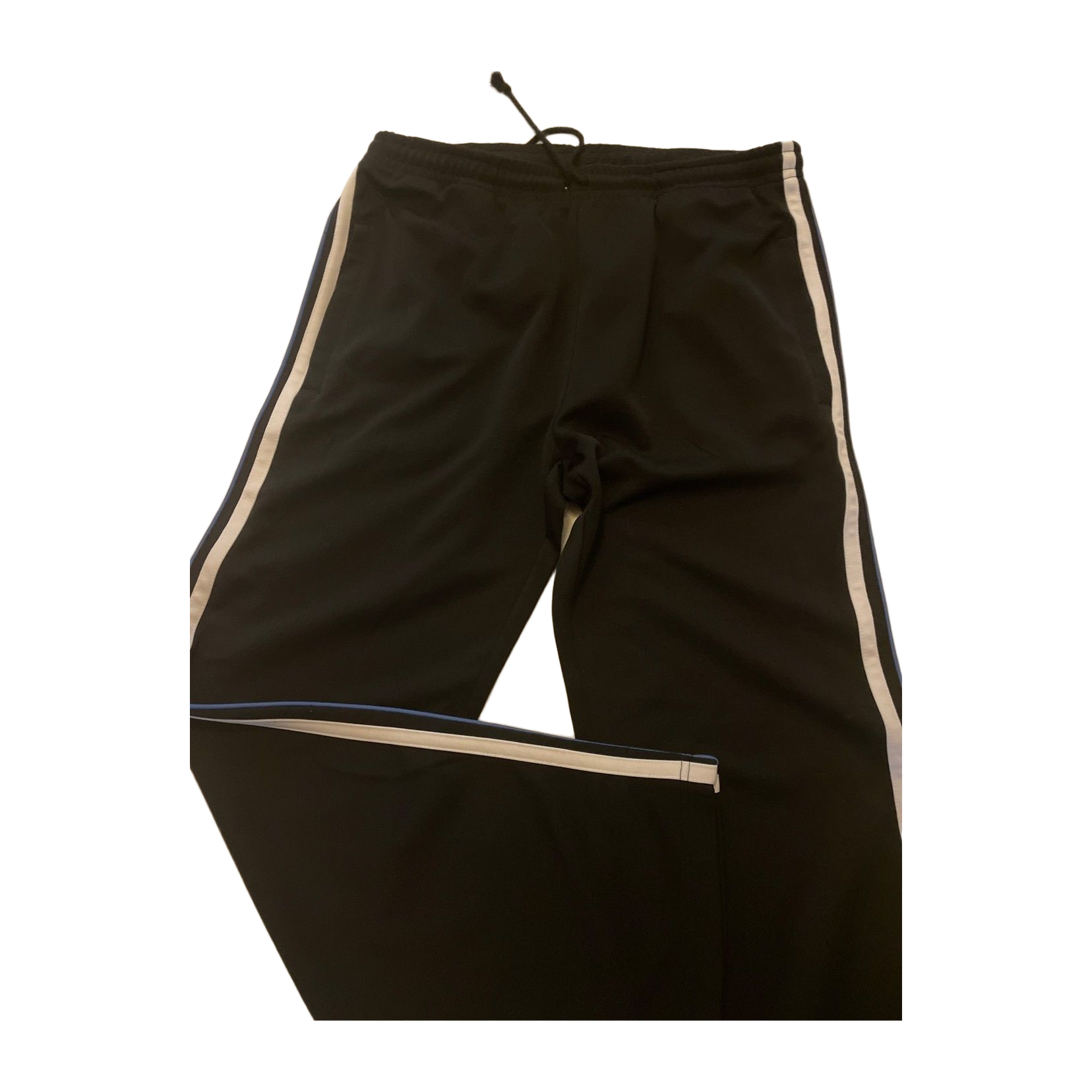 Tummansiniset verkkahousut ihan suoralla lahkeella. Veikkaan, että peräisin kasarilta. Siistit, raidat sivuissa. Koko noin 40. Sopii kyllä koolle 38 myös.