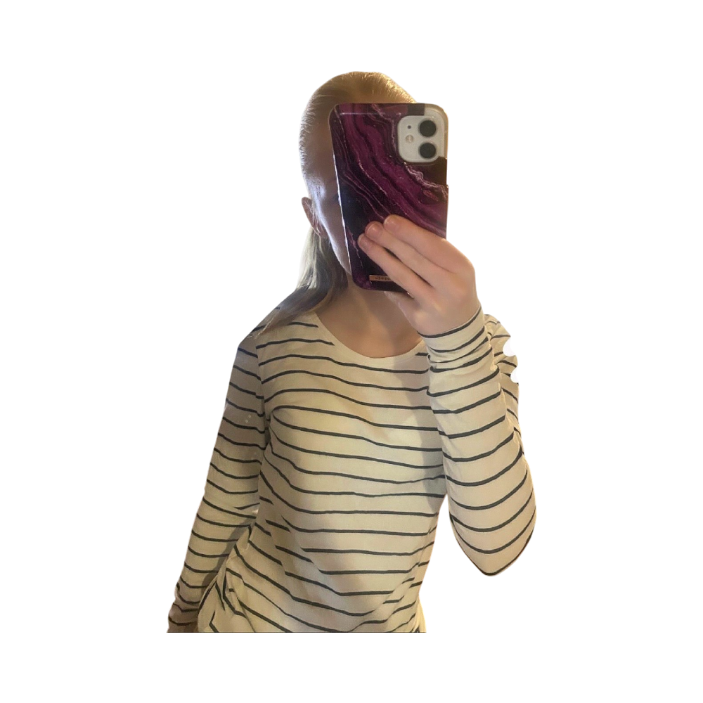 Valkea raidallinen pitkähihainen paita