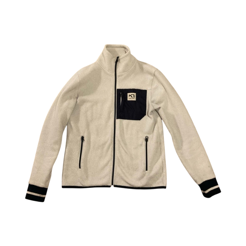 Pehmeä fleece-takki vetoketjuilla ja rintataskulla.