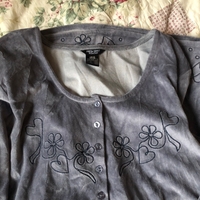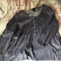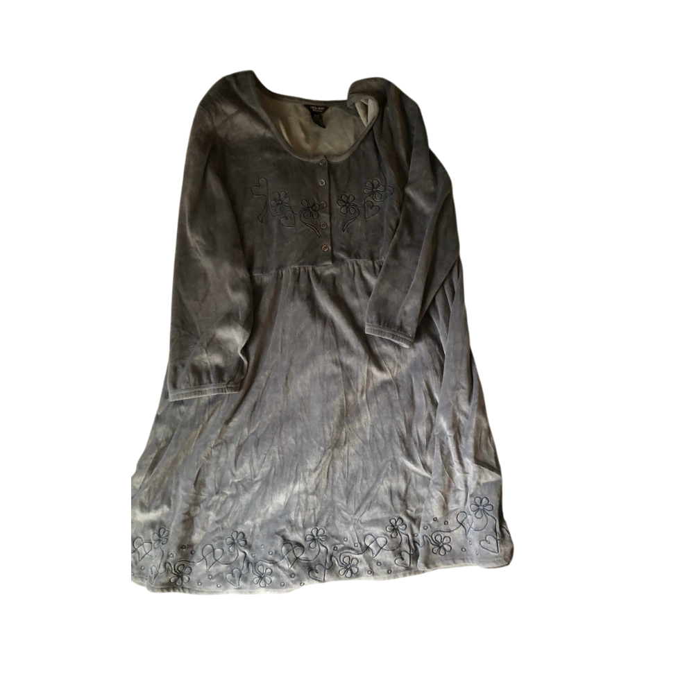 Pitkä veluurimekko kukka- ja sydänkirjailuilla, napit edessä./tunika