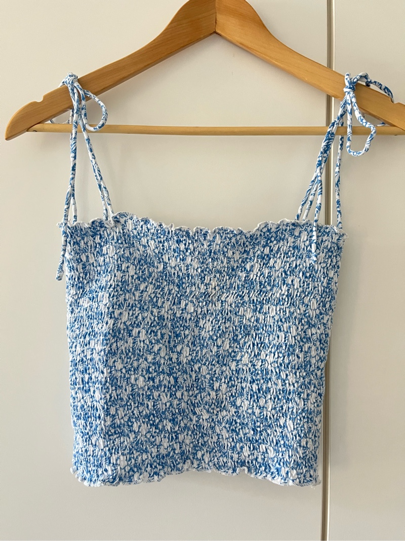 Siistissä kunnossa oleva toppi. Koko S mutta vaikka on joustava menee parhaiten XXS-S kokoisille. Olkaimet voi sitoa itse miten haluaa