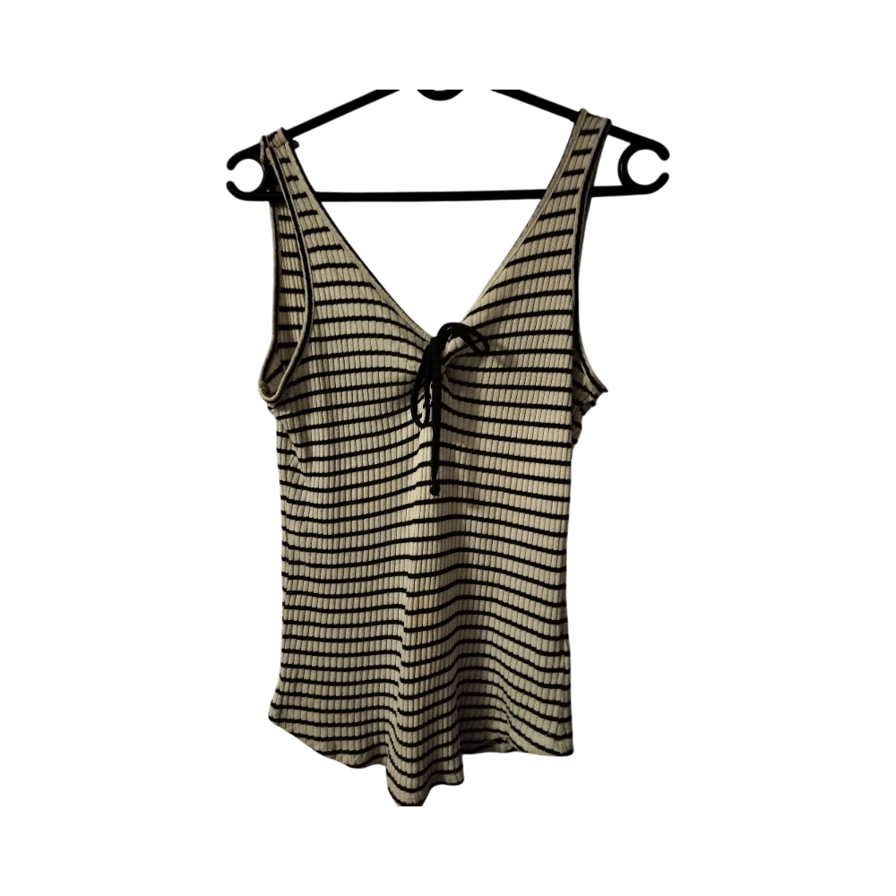 Hihaton ribbattu toppi, etunauhallinen, rento istuvuus.