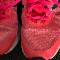 Käytetty muutaman kerran ja todettu omaan jalkaan hieman liian ahtaaksi. Muutama näkyvä käytönjälki, esim kantapään kohdalta sisältä kuluneet ja pieni tahra edessä, ei juurikaan kuitenkaan erotu.