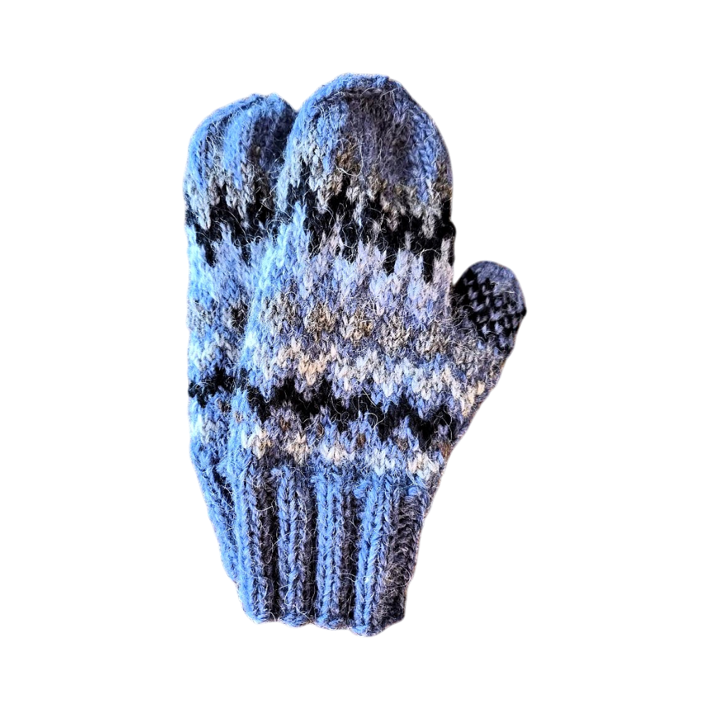 Paksut/lämpimät lapaset. Neulottu islanninlampaan villalangasta, alafoslopi/kaksinkertainen lettlopi.