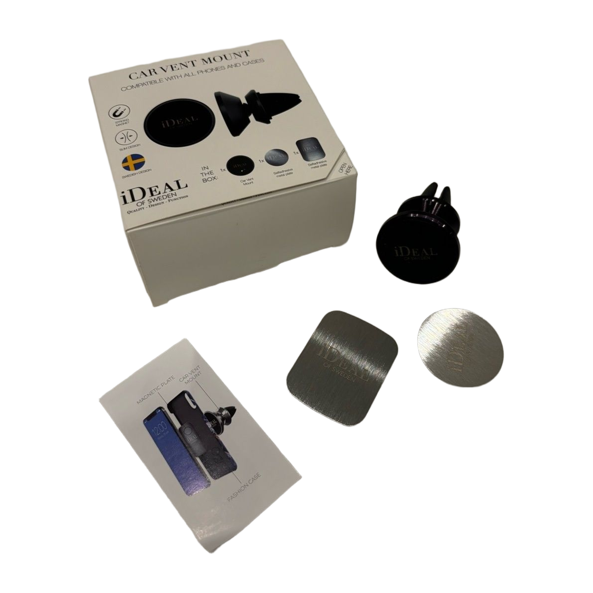 Car vent mount. Full set incl two metal pieces to add to your phone to insure the attachment. Never used