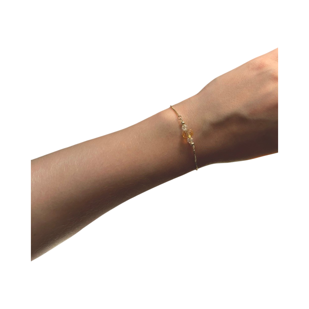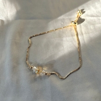 Käsintehty rannekoru lasihelmillä. Saatavilla sekä hopeisena että kultaisena. Säädettävä pituus. Yhteensopivia korvakoruja myös saatavilla.