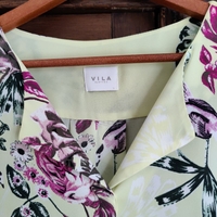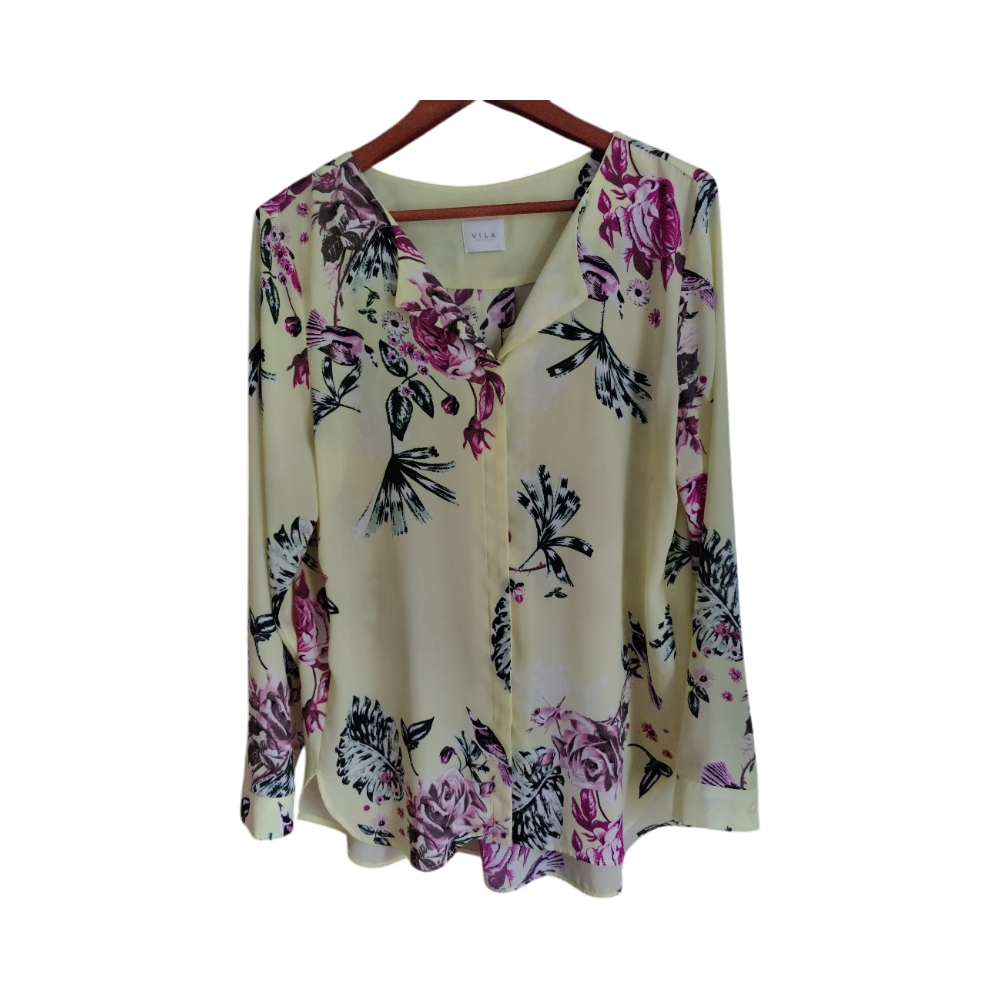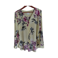 Kevyt pitkähihainen pusero, vaalea kukkakuosi, takaa hiukan pidempi, mahtuu myös itselle, koko 44