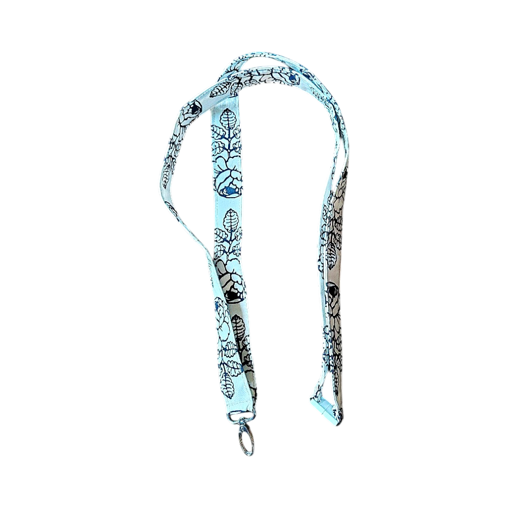 Uusi, yliolan avainnauha ommeltu Marimekon vihkiruusu kankaasta, turvalukko ja avainlenkki, kirjeenä 15 €