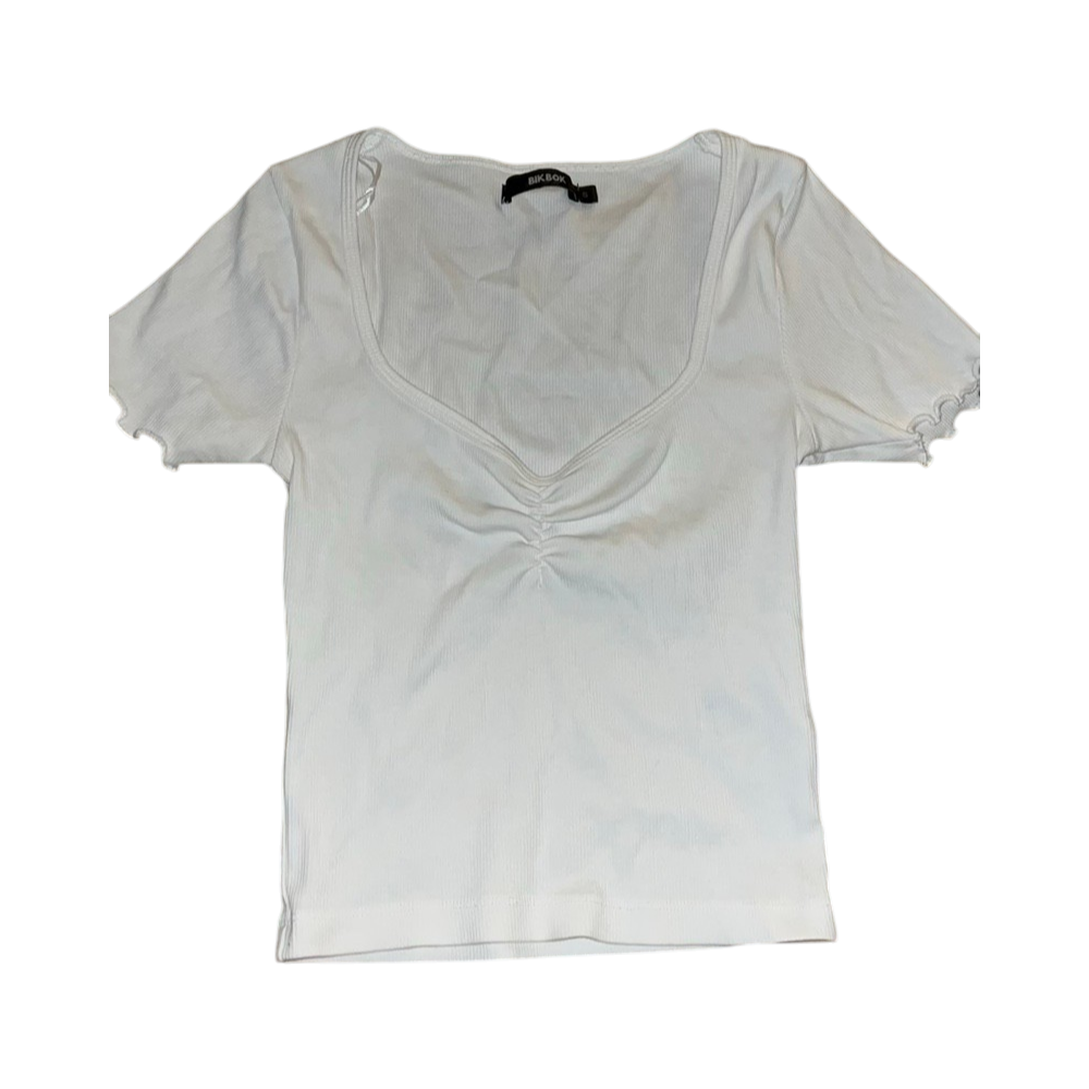 Valkoinen ribbattu lyhythihainen paita, koko S.