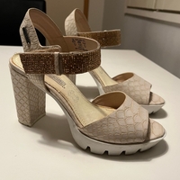 Avokkaat, korolliset sandaalit, kauniit strassihihnat. Käytön jälkeä (viimeinen kuva)