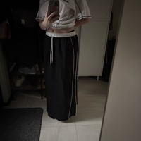 H&M mlack maxi skirt with white lines and elastic drawstring waist