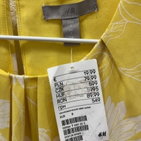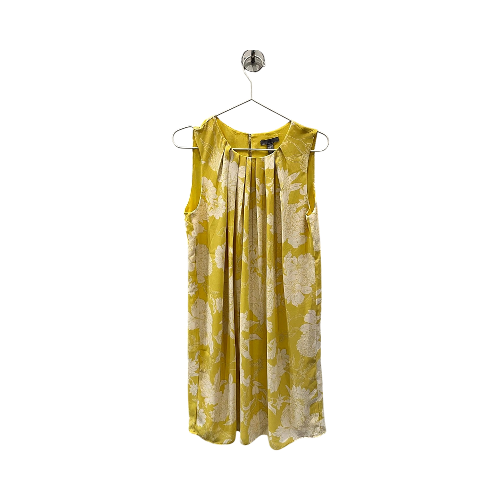 Keltainen polvipituinen kukkamekko, koko S. Mekko on uusi.