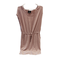 Käyttämätön hempeän lila mekko kokoa 40. Vyötäröllä kiristysnauha ja taskut molemmin puolin. Kuvat vääristää väriä.