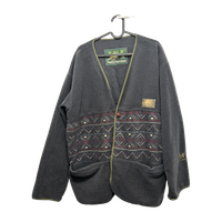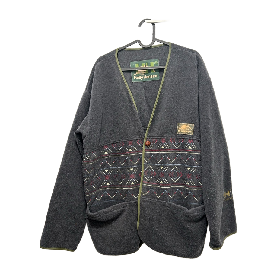 Helly Hansen harmaa fleece neuletakki, koristekuvioilla. Unisex, oversize neule, vintage fleece. Kokolapussa miesten 50-52, naisten 44-46.