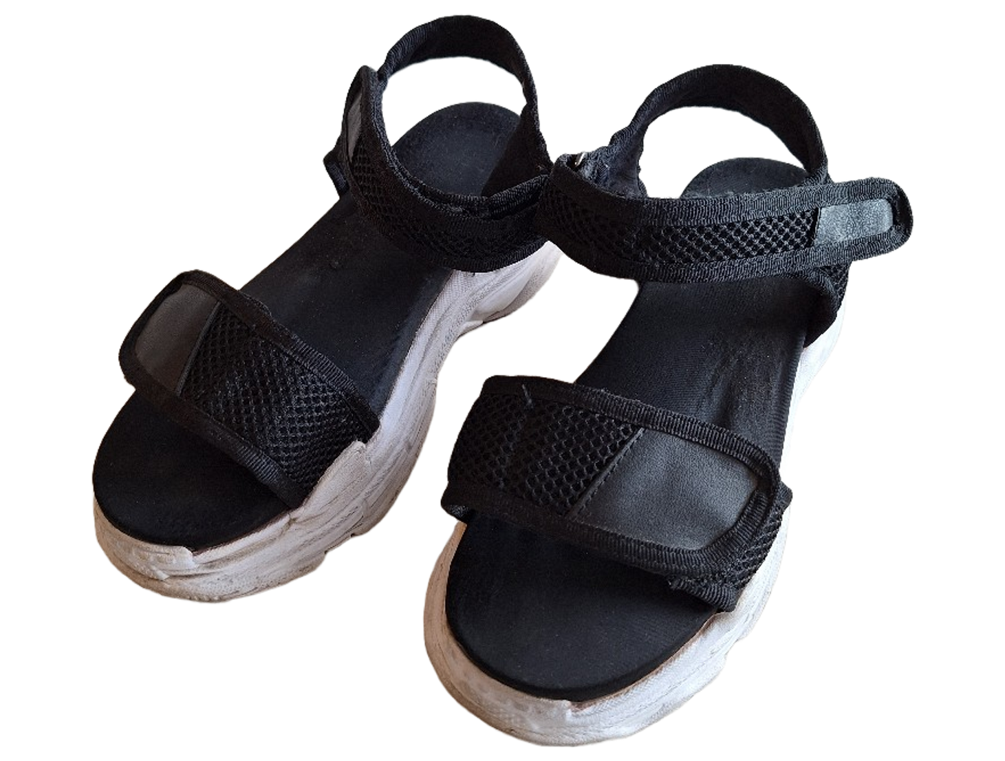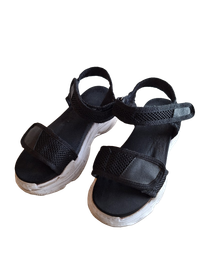 Naisten mustat sandaalit valkoisella paksulla pohjalla