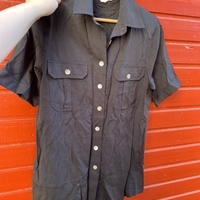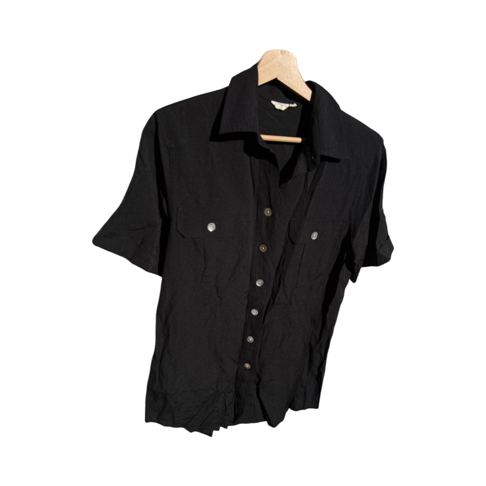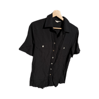 Napillinen musta lyhythihainen paita, koko 34/36. Olkatoppaukset
