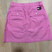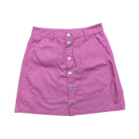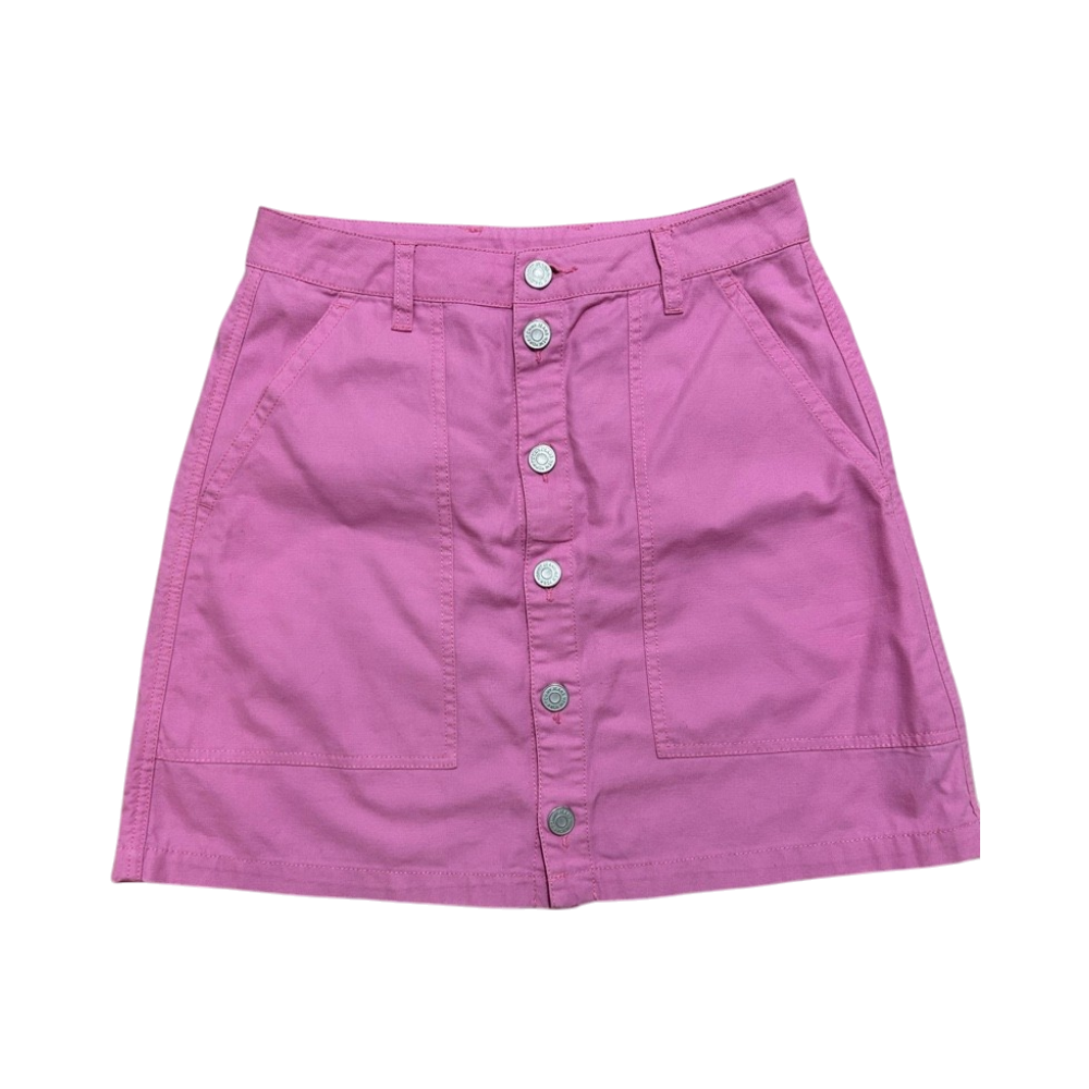 Pinkki nappikiinnitteinen minihame, etu- ja takataskut.