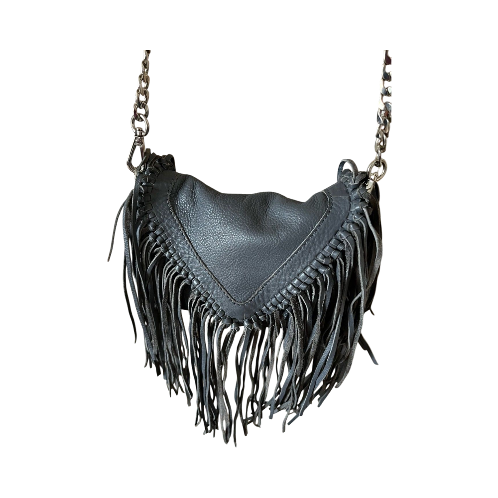 Magee harmaa nahkainen bohotyylinen hapsulaukku, crossbody. Ei kulumaa kulmissa tmv.