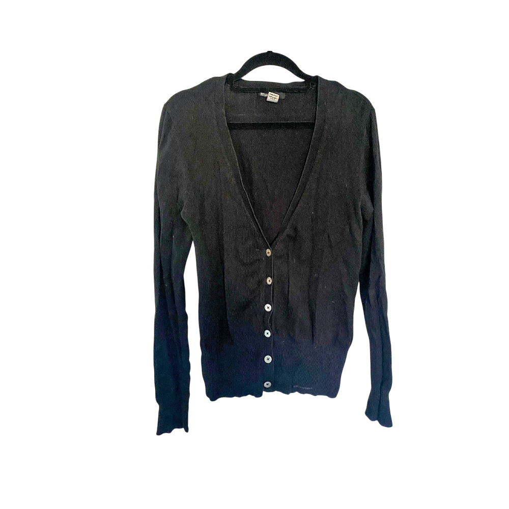 Klassinen musta neule, jossa napit edessä.