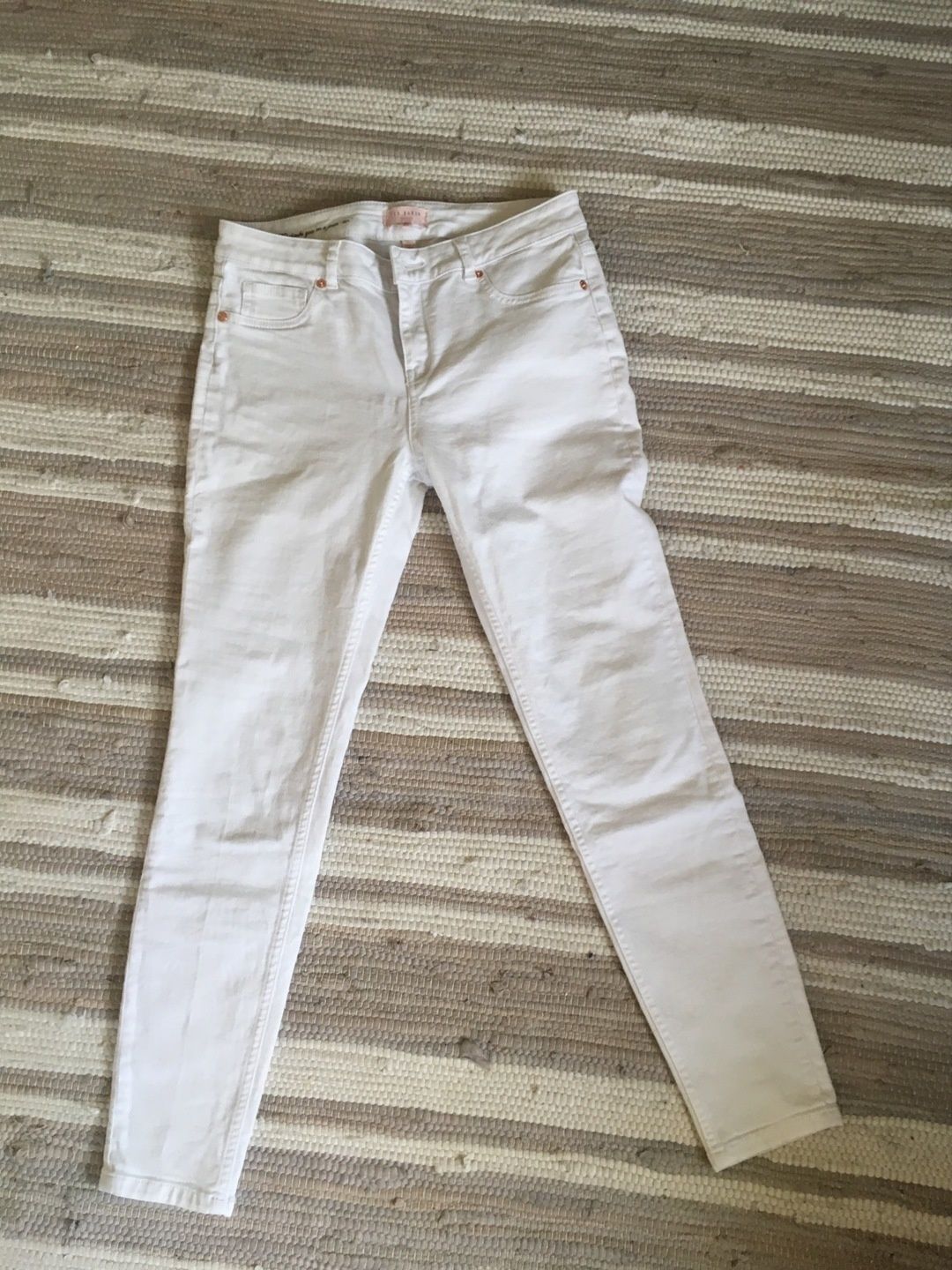 Valkoiset Ted Baker farkut, kapealahkeiset ja slimmi malli. Normaali vyötärö. Ihanat ruusukultaisen väriset napit! Käytetty vain muutaman kerran.