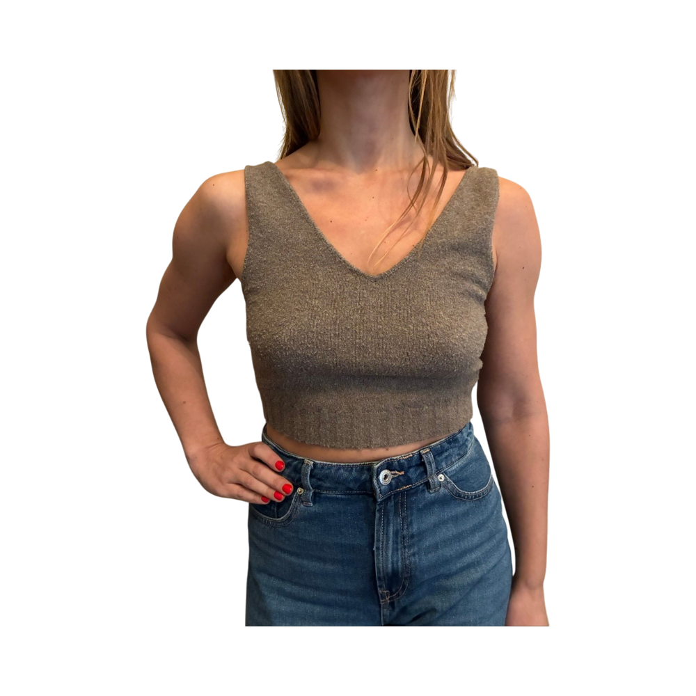 Pehmeä joustava neulottu crop top, pituus 40cm.
