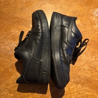 Classic all-black Nike Air Force 1 Low sneakers. Leather upper with perforated toe box, tonal swoosh, and rubber outsole. Durable everyday sneakers with a timeless streetwear look.
