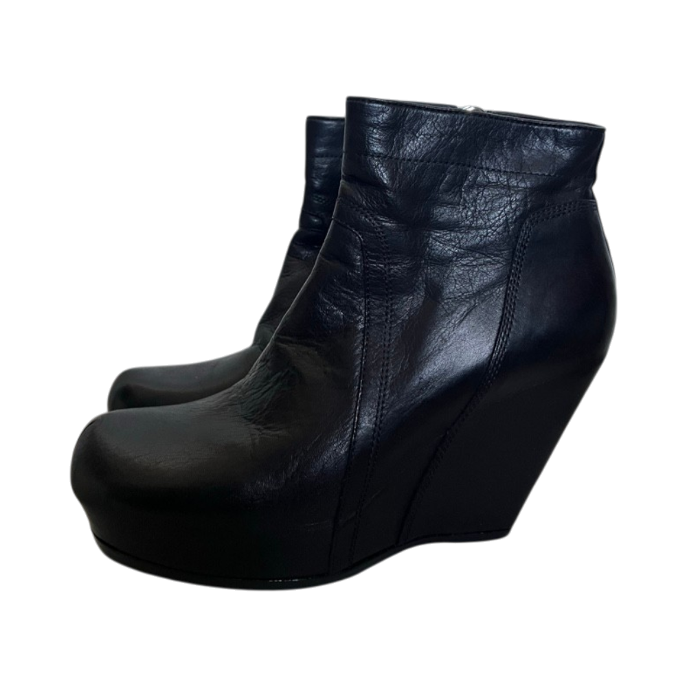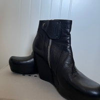 Mustat Rick Owensin nahkaiset kiilakorot. Tosi hyvä kunto, kuin uudet, ei käytönjälkiä. Pohjiin lisätty kumipohja suojaamaan. Koko EU40.