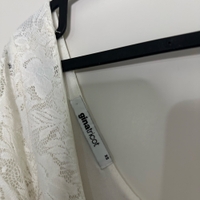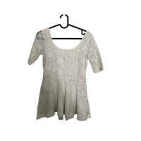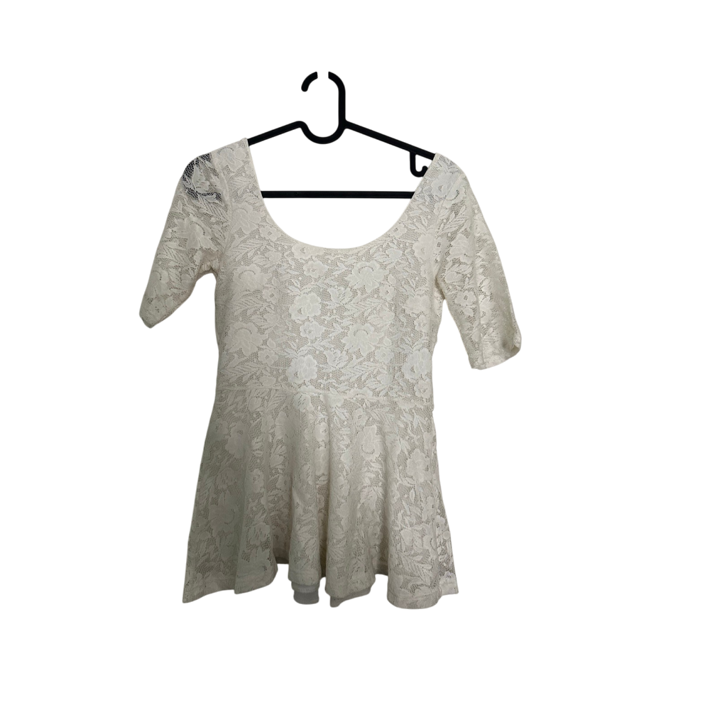Lyhythihainen, peplumtyylinen pitsitoppi, koko XS.