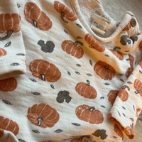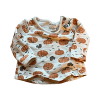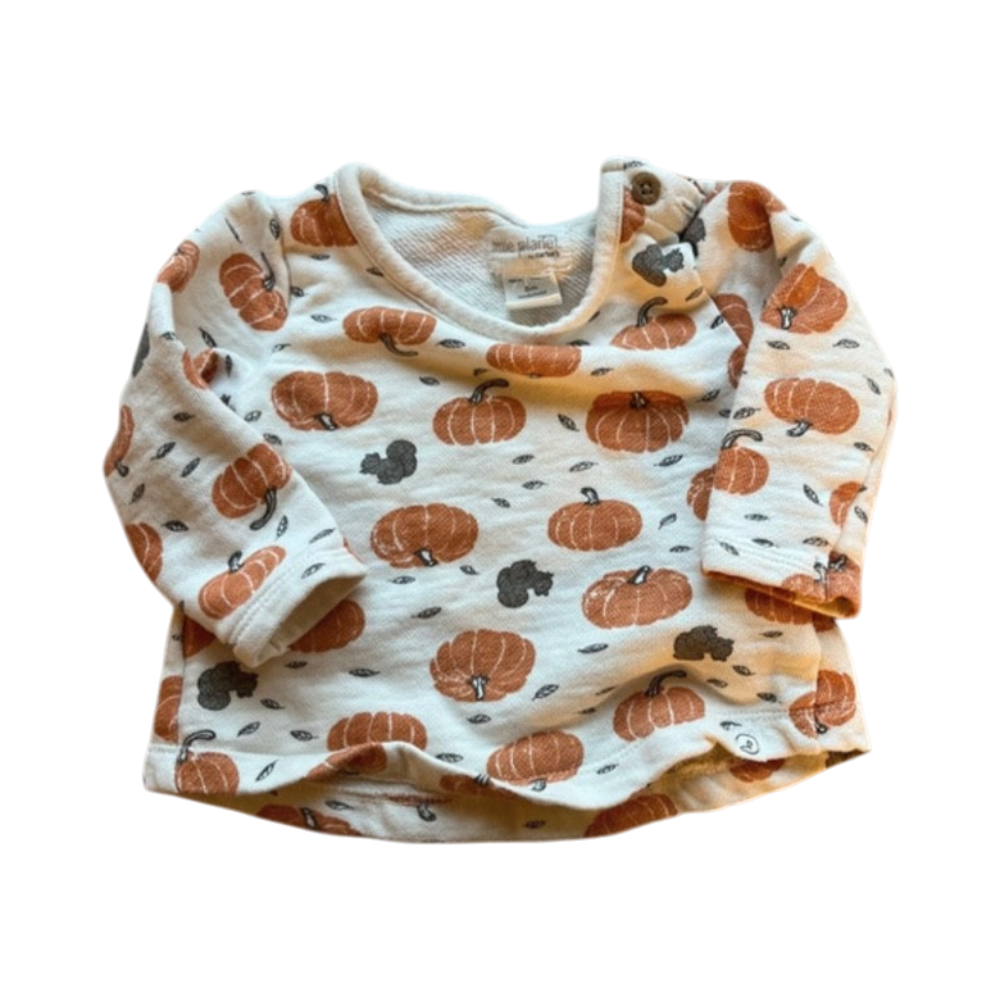 Pehmeä vauvan pitkähihainen paita kurpitsakuvioin. Koko 6M vastaa kokoa 68.