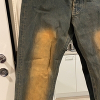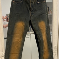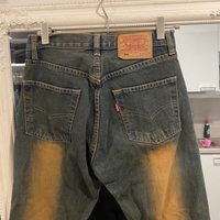 Levit 501 -farkut, värjätyt/oranssit raidat, hyväkuntoiset. Koko 28/32