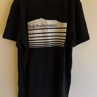 Myydään musta Peak Performance -t-paita koossa L. Edessä pieni logoprintti ja selässä isompi, näyttävä logo. Paita on erittäin hyväkuntoinen ja mukava päällä, sopii hyvin arkeen ja vapaa-aikaan. Käytetty vain muutaman kerran.