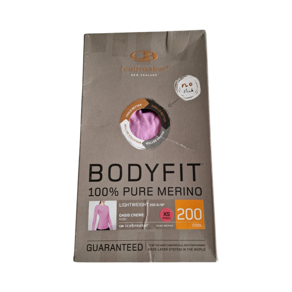 Uusi, alkuperäisessä paketissa oleva Icebreaker -merkin vaaleanpunainen, pitkähihainen merinovillapaita koossa xs.