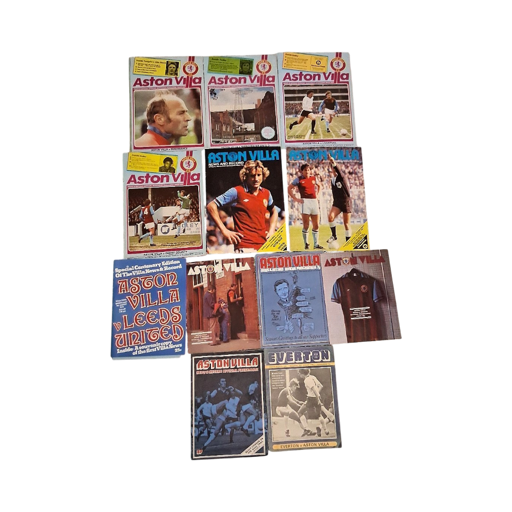 Sukella Aston Villan 70-luvun historiaan! Kattava kokoelma 12 otteluohjelmaa (matchday magazine) Villansin hienoilta vuosilta 1972–1978. Valtaosa ohjelmista on erinomaisessa kunnossa! Täydellinen tapa aloittaa tai täydentää kokoelmaa.