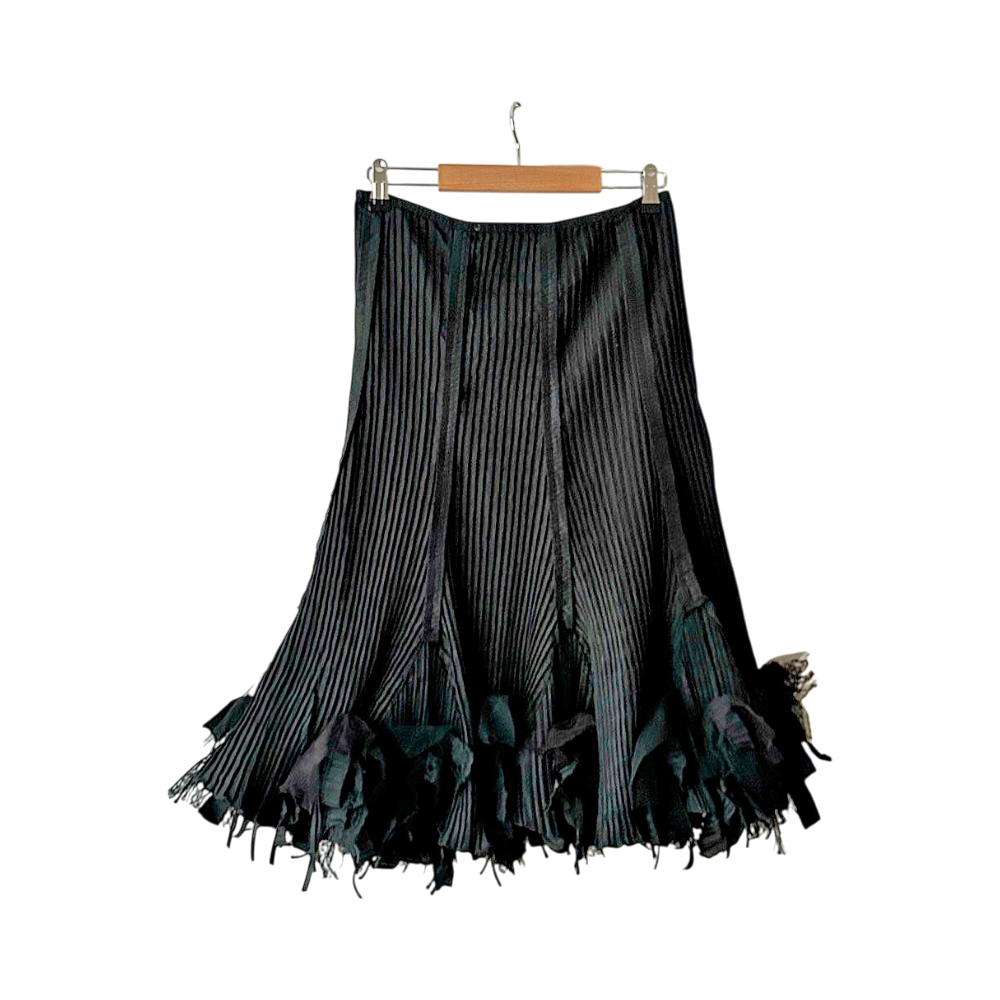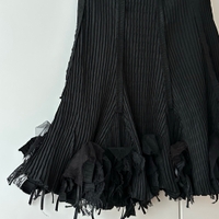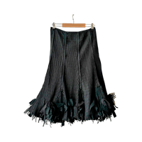 Tyylikäs hame frilliyksityiskohdilla. Vyötärön ympärys on 68cm ja hame on joustavaa materiaalia, kuitenkin sivussa on vetoketju’